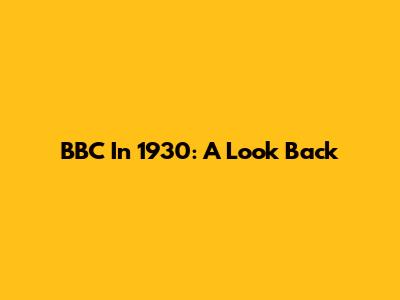 BBC In 1930: A Look Back
