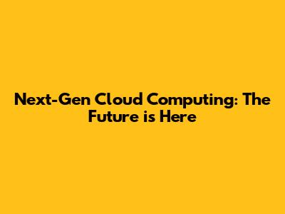 What Exactly is Next-Gen Cloud Computing?