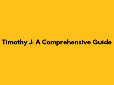 Timothy J: A Comprehensive Guide