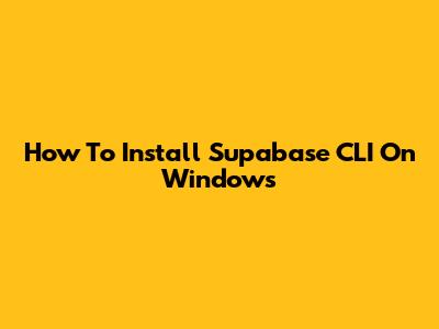 How To Install Supabase CLI On Windows