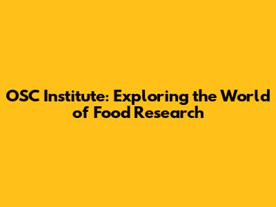 Unveiling the OSC Institute of Food Research: A Deep Dive