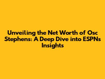 Unveiling the Net Worth of Osc Stephens: A Deep Dive into ESPN's Insights