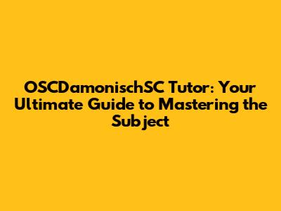 Why OSCDamonischSC Tutoring is a Must-Have