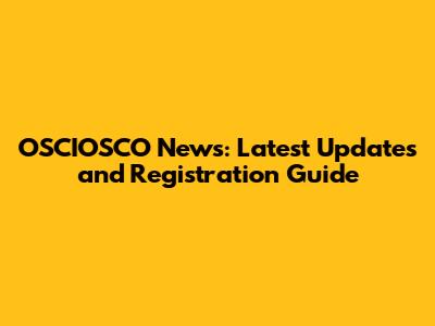 OSCIOSCO News: Latest Updates And Registration Guide