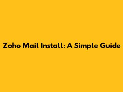 Zoho Mail Install: A Simple Guide