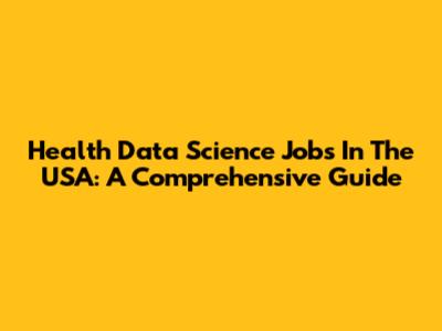 Health Data Science Jobs In The USA: A Comprehensive Guide