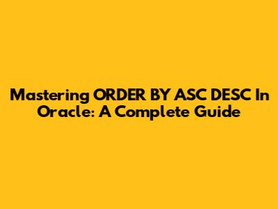 Mastering ORDER BY ASC DESC In Oracle: A Complete Guide