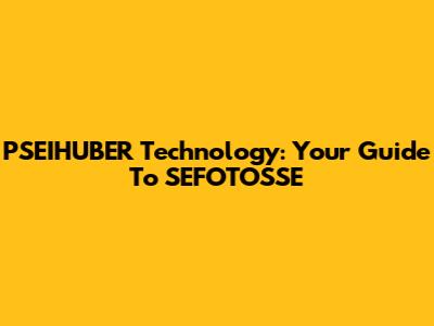 PSEIHUBER Technology: Your Guide To SEFOTOSSE