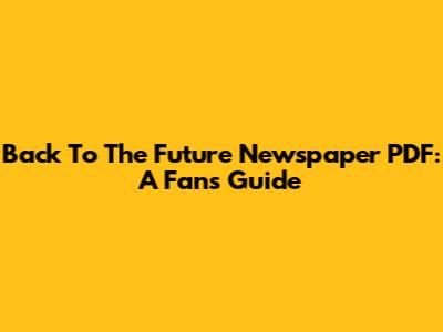 Back To The Future Newspaper PDF: A Fan's Guide