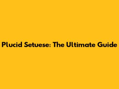 Plucid Setuese: The Ultimate Guide