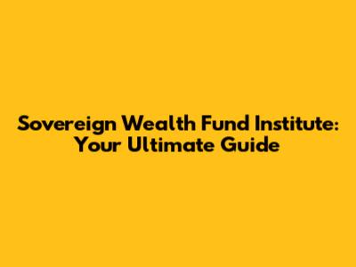 Sovereign Wealth Fund Institute: Your Ultimate Guide
