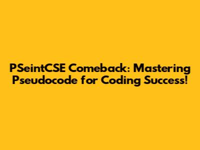 Hey guys! Ever feel like you're staring at the code abyss, lost and confused? Or maybe you're just starting your coding journey, and the jargon feels like a whole new language? Well, fear not! Because today, we're talking about a secret weapon that can seriously level up your programming game: PSeintCSE! This isn't just about another coding tool; it's your friendly neighborhood guide to understanding the very foundations of programming logic using pseudocode. So, buckle up, because we're about to embark on a comeback journey to rediscover the power of PSeintCSE and how it can help you master the art of coding. Let's dive deep into this. We're going to explore what PSeintCSE is, why it's super helpful, and how you can use it to ace your coding endeavors.