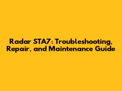 Radar STA7 Repair: Step-by-Step Guide