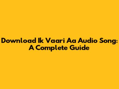 Download 'Ik Vaari Aa' Audio Song: A Complete Guide