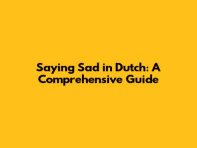 Saying 'Sad' In Dutch: A Comprehensive Guide