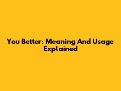 You Better: Meaning And Usage Explained