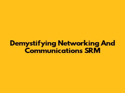 Demystifying Networking And Communications SRM