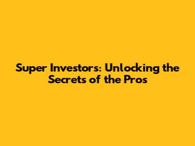 Super Investors: Secrets Of The Pros