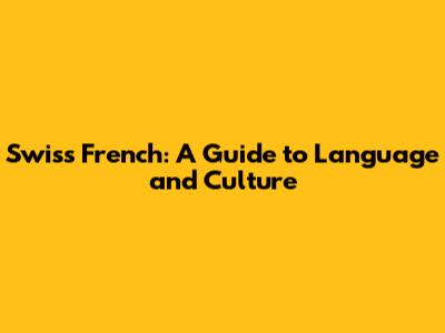 Swiss French: A Guide To Language And Culture