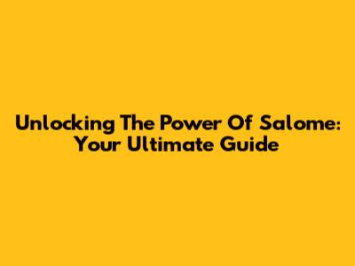 Unlocking The Power Of Salome: Your Ultimate Guide