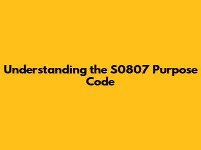 Hey guys! Let's dive deep into the S0807 purpose code. This little alphanumeric sequence might seem like just another piece of jargon, but understanding its significance can be incredibly helpful, especially if you're dealing with specific types of documentation or financial transactions. We're going to break down what the S0807 purpose code is, why it's used, and how you might encounter it in your day-to-day. It's not as complicated as it sounds, and by the end of this article, you'll feel much more confident about this particular code. So, buckle up, and let's get started on unraveling the mystery of the S0807 purpose code!