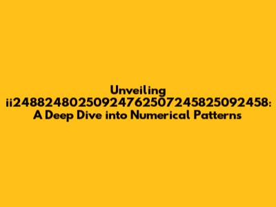 Hey everyone, let's dive headfirst into the fascinating world of numbers and explore a rather intriguing sequence: ii24882480250924762507245825092458. Now, I know what you're thinking, "Wow, that's a mouthful!" But trust me, within this string of digits lies a potential treasure trove of hidden patterns, mathematical relationships, and perhaps even a glimpse into something more profound. Our goal here isn't just to stare at these numbers; it's to understand them. We're going to break down this sequence, analyze its components, and see what kind of insights we can uncover. Whether you're a seasoned mathematician or just someone curious about the beauty of numbers, there's something here for everyone. So, buckle up, because we're about to embark on a numerical adventure, unraveling the secrets that this sequence holds. We'll be using different approaches, from basic pattern recognition to potentially more advanced mathematical techniques, to get a handle on what makes ii24882480250924762507245825092458 tick. Let's start this journey into the unknown together and see what we can find, okay?