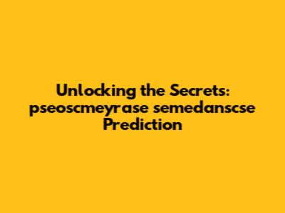 What Exactly Is Pseoscmeyrase Semedanscse Prediction?