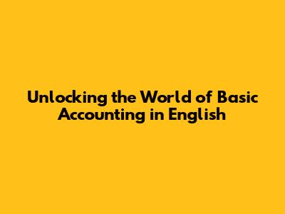 Unlocking The World Of Basic Accounting In English