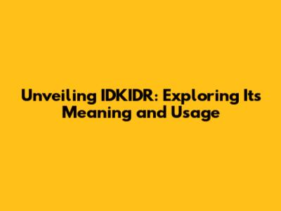 What Does IDKIDR Mean? Decoding the Acronym