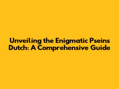 Hey guys! Ever stumbled upon something called pseinissanse dutch? Sounds kinda mysterious, right? Well, buckle up, because we're about to dive deep into the fascinating world of Pseins' Dutch! This guide is designed to unravel the complexities, explore the nuances, and give you a solid understanding of what this intriguing term really means. We'll be going through its origins, how it's used, and why it's something you should know about. So, grab a coffee, get comfy, and let's start this adventure together!