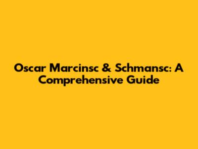 Oscar Marcinsc & Schmansc: A Comprehensive Guide