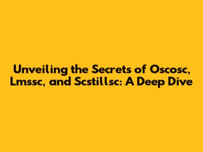 Hey guys! Ever heard of Oscosc, Lmssc, and Scstillsc? Maybe you're here because you're trying to figure out what they are, or perhaps you've stumbled upon them in your research. Either way, welcome! This article is designed to be your go-to guide, breaking down these terms in a way that's easy to understand and, hopefully, even a little bit exciting. We're going to dive deep, explore their meanings, and see how they might relate to each other. Get ready for a journey of discovery! Let's get started, shall we?