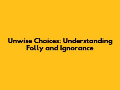 Unwise Choices: Understanding Folly And Ignorance
