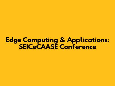 Edge Computing & Applications: SEICeCAASE Conference
