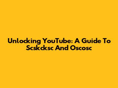 Unlocking YouTube: A Guide To Scskcksc And Oscosc