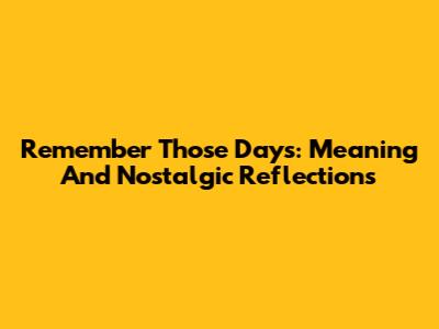 Remember Those Days: Meaning And Nostalgic Reflections