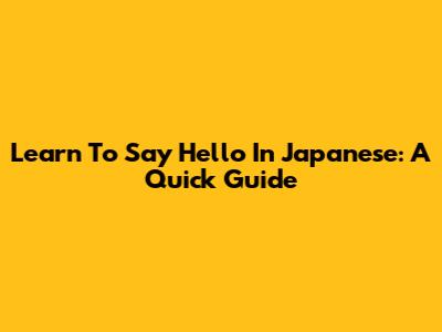 Learn To Say Hello In Japanese: A Quick Guide