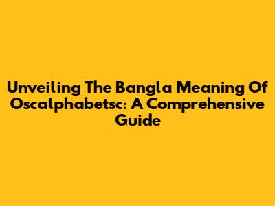 Unveiling The Bangla Meaning Of Oscalphabetsc: A Comprehensive Guide