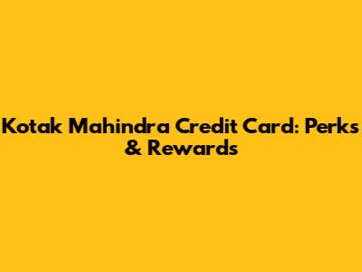 Kotak Mahindra Credit Card: Perks & Rewards